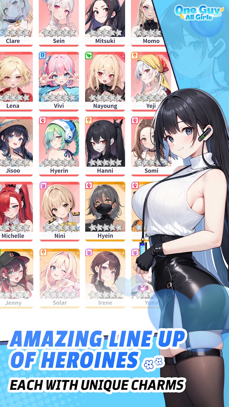 One Guy, All Girls Mod es un juego de rol visual (RPG) de estilo ACG (Anime, Comics, Games) donde el jugador controla a un protagonista masculino en escenarios interactivos con personajes femeninos. El juego utiliza mecánicas de combate por turnos y un sistema de progresión de personajes. Esta versión modifica los parámetros de juego para facilitar el avance en la narrativa.
